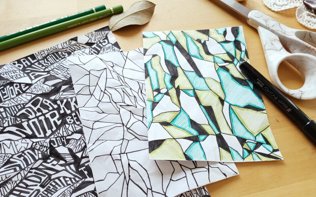- Remplir avec des pointillés / des petits motifs façon Zentangle