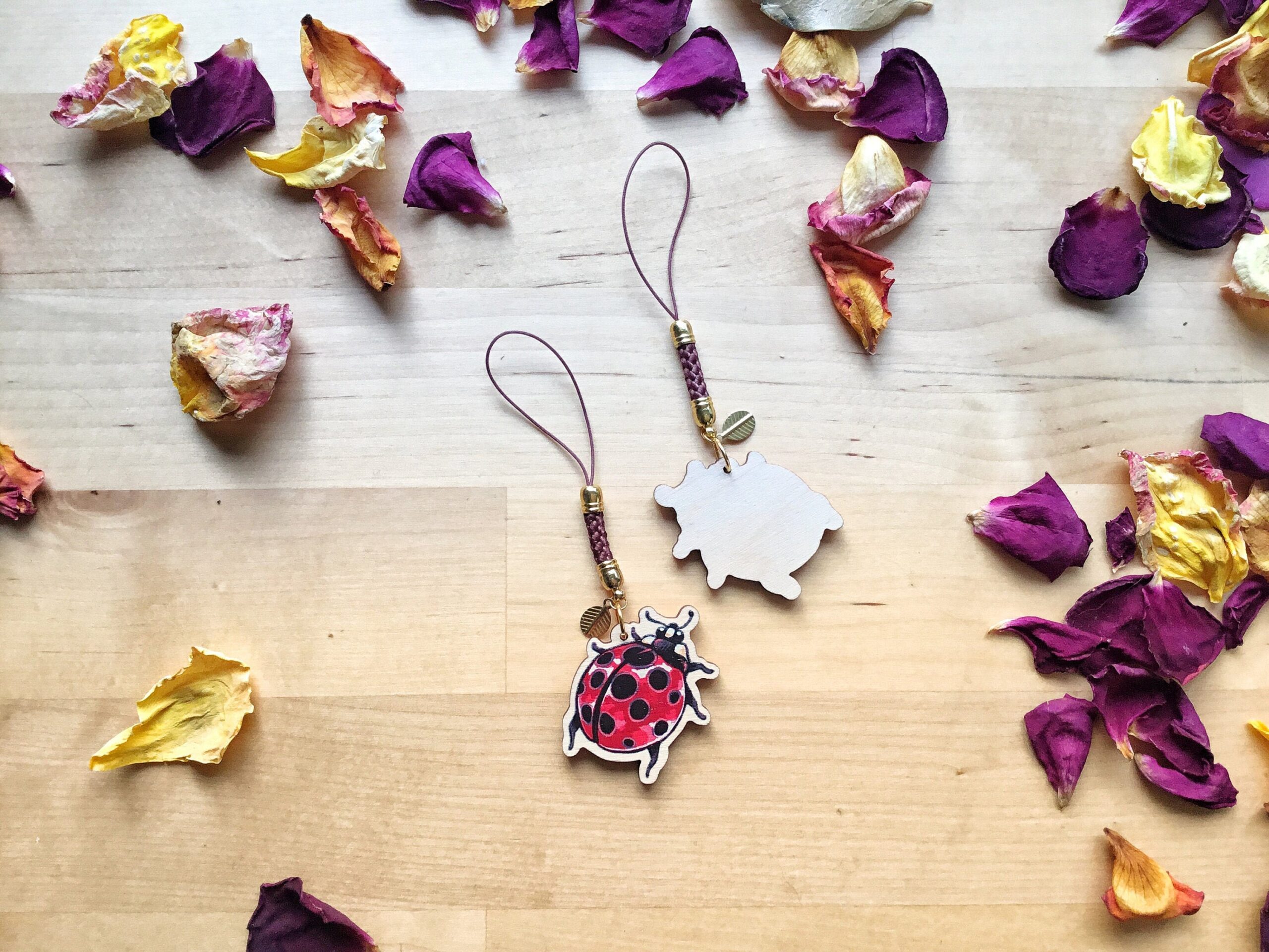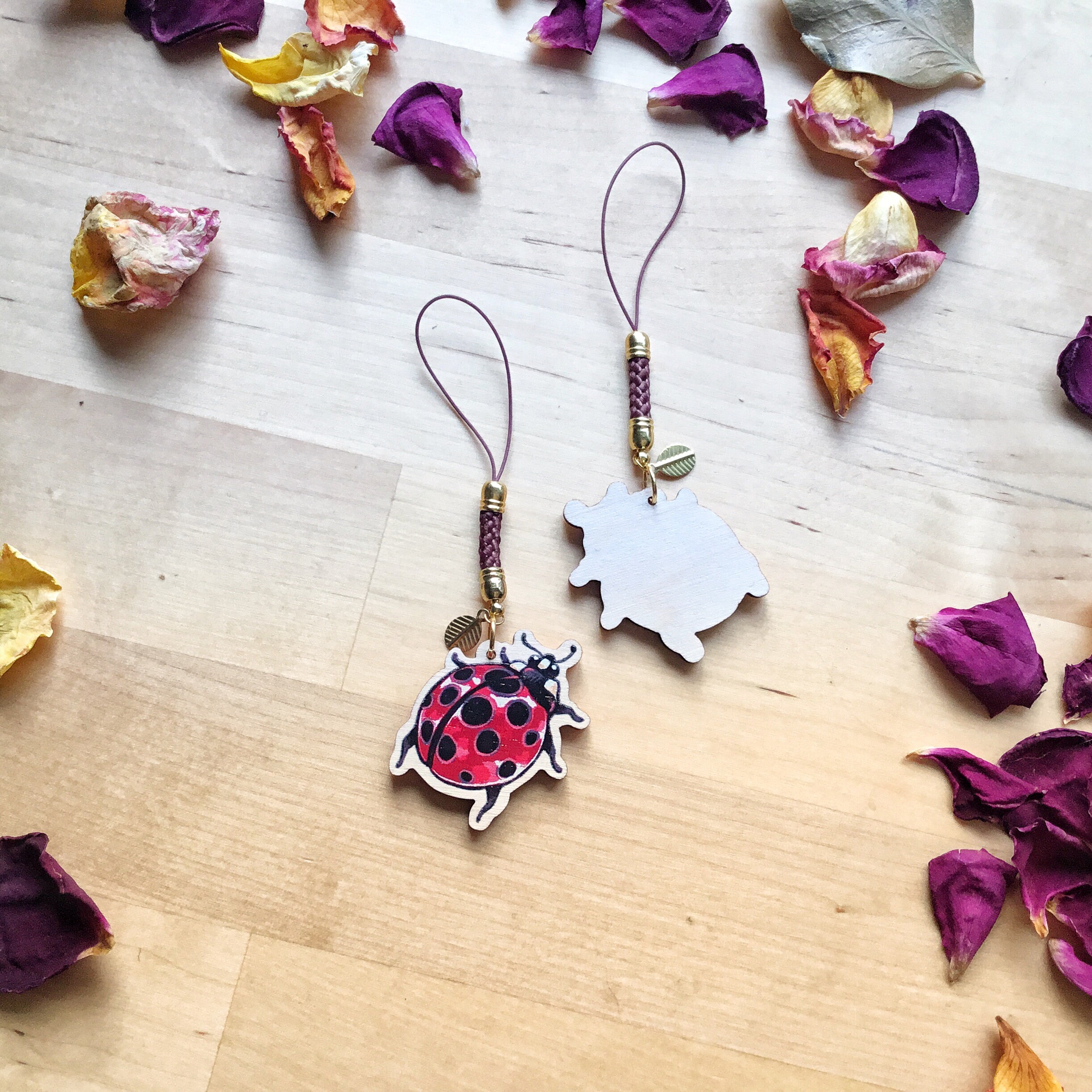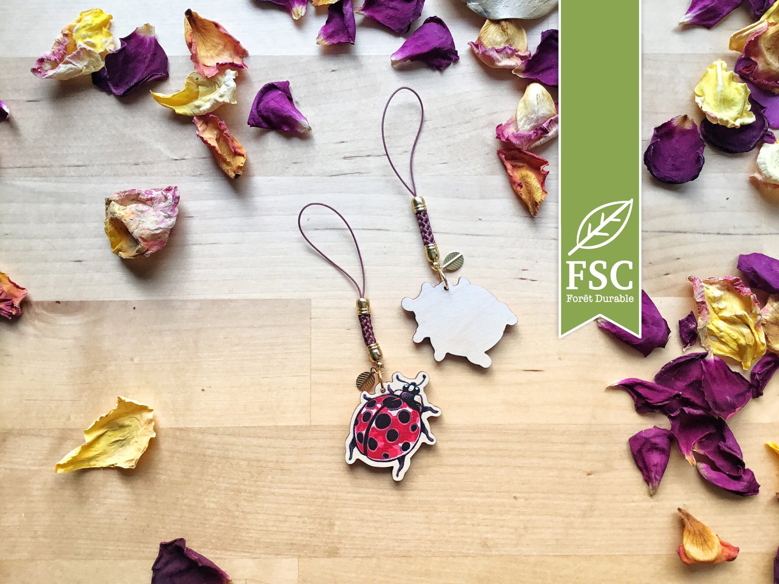 Petits porte-clefs en bois, idéal pour décorer votre console portable, votre téléphone ou vos clefs.