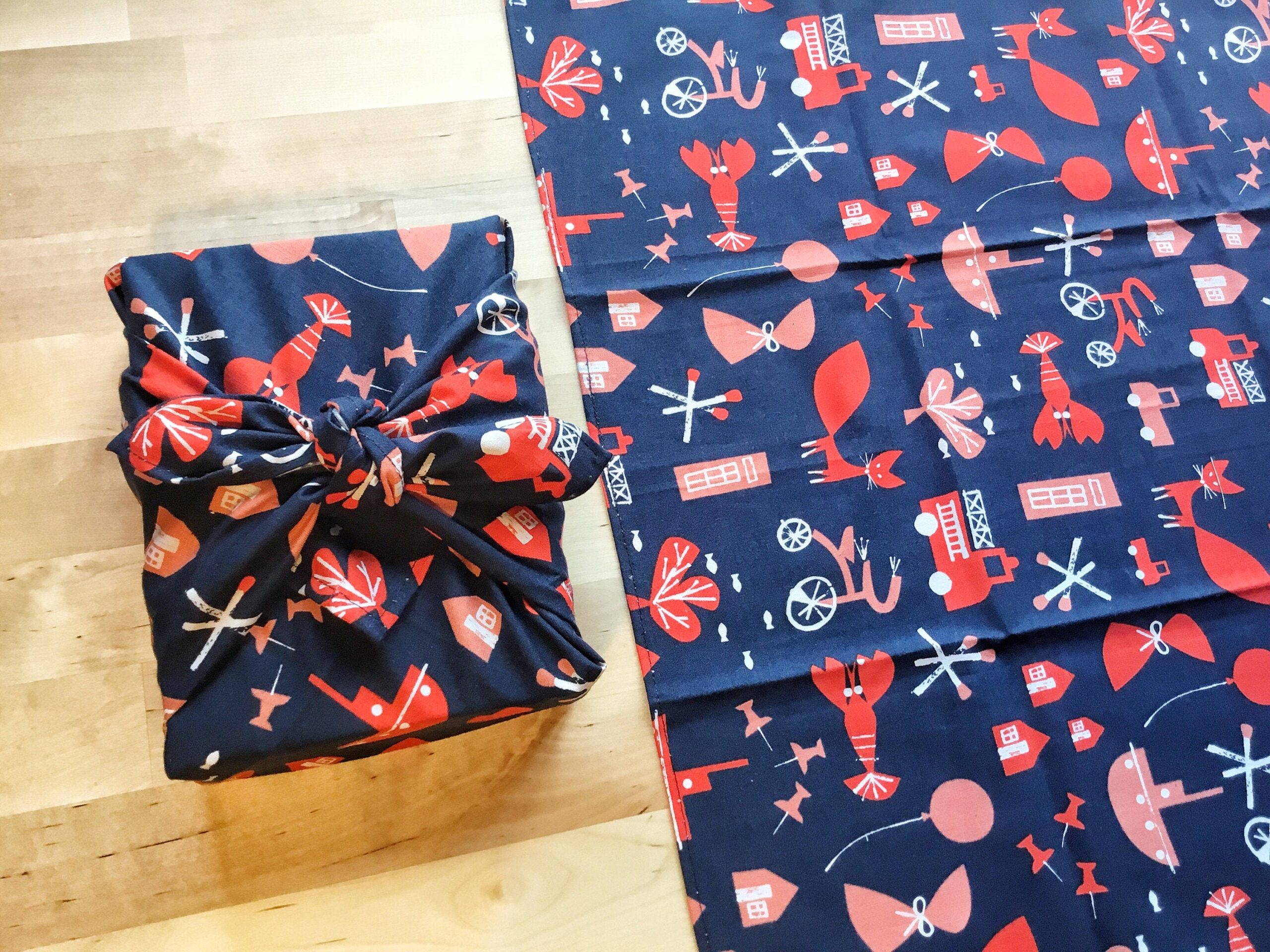 Tissus pour emballages cadeaux lavables et réutilisables.