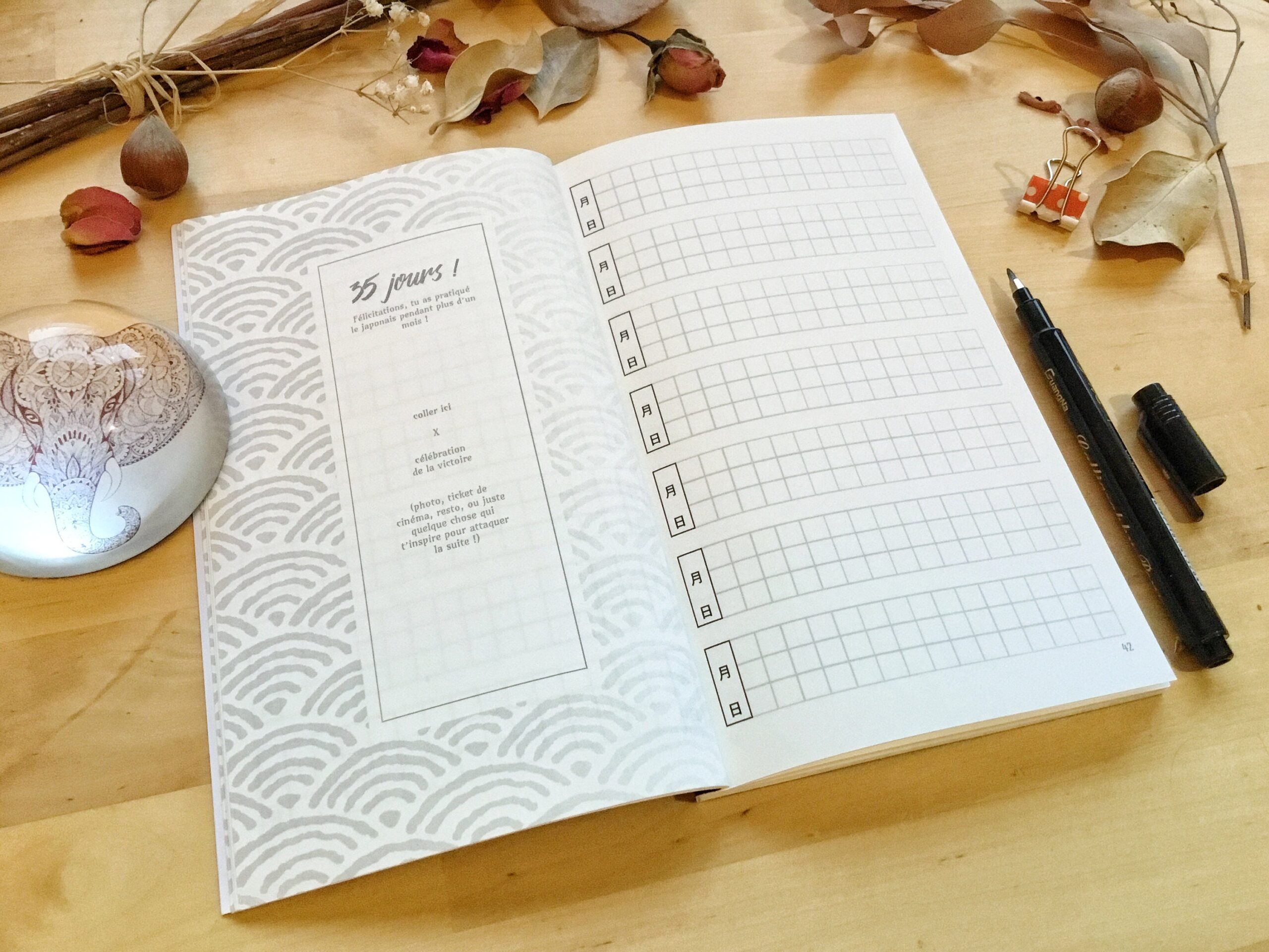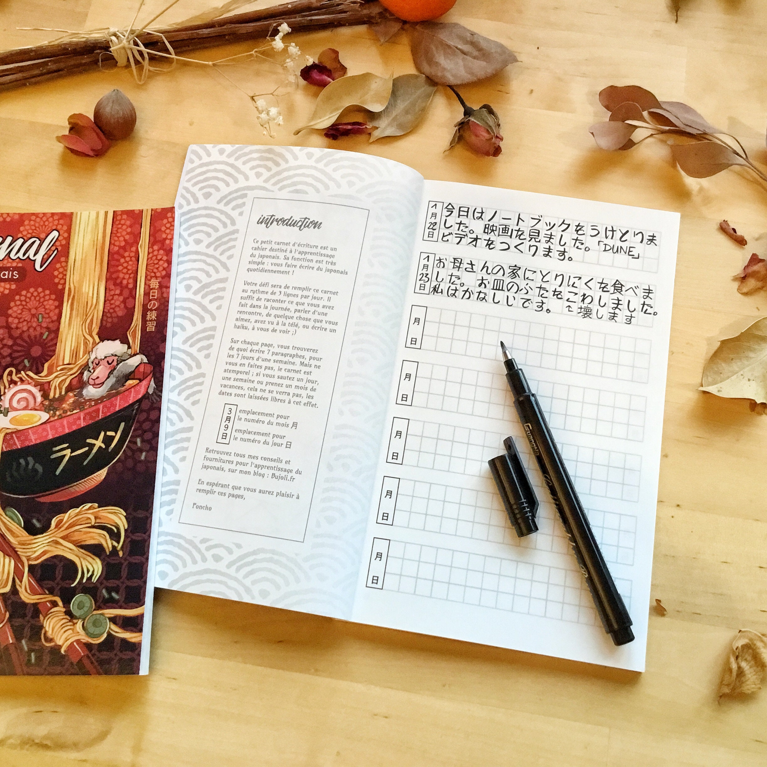 Petit carnet pour pratiquer le japonais au quotidien, prévu pour 500 jours de pratique quotidienne.