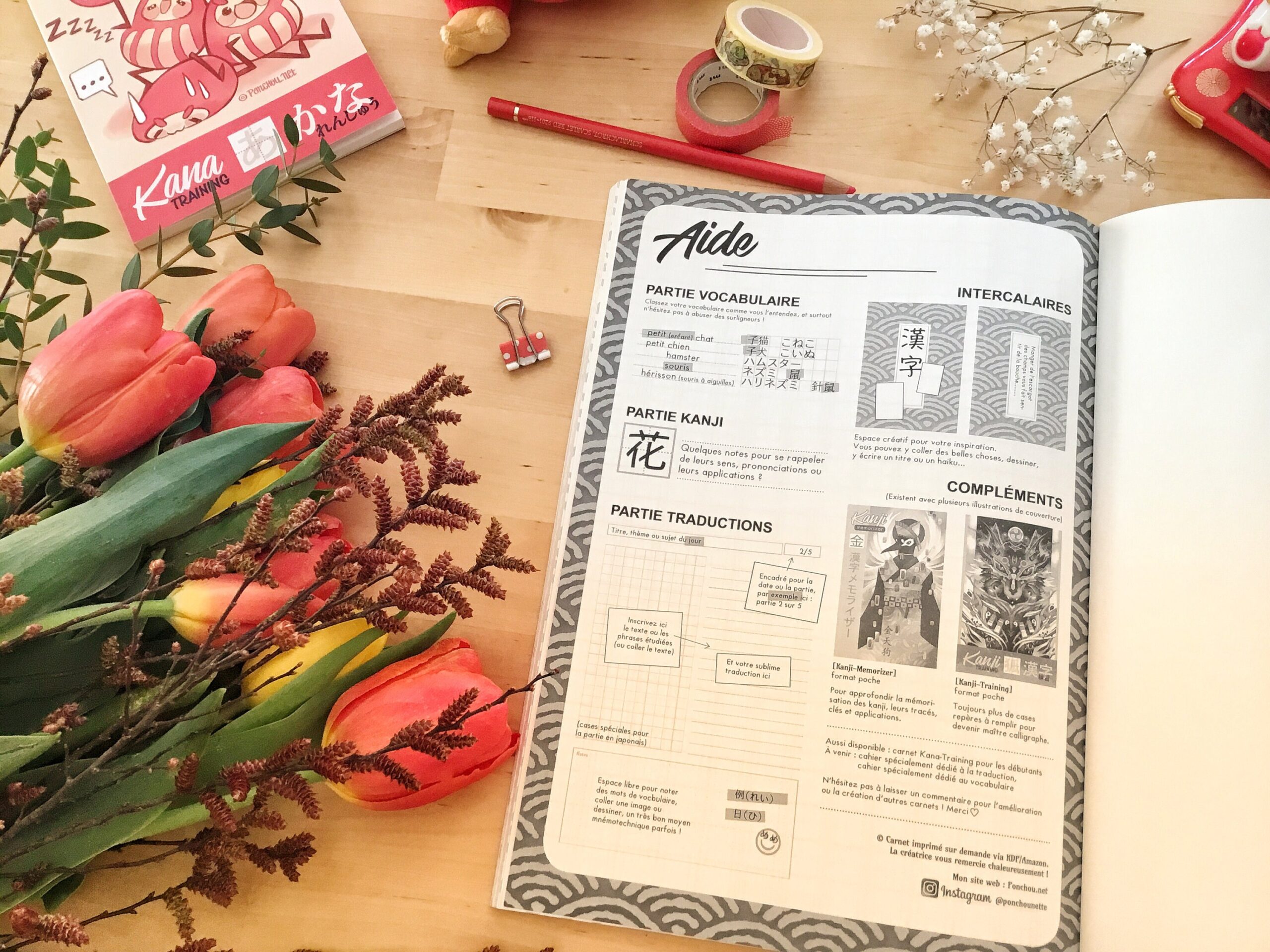 -> un carnet de poche pour mémoriser les kanji (modèle Lune Noire) (6,50€)