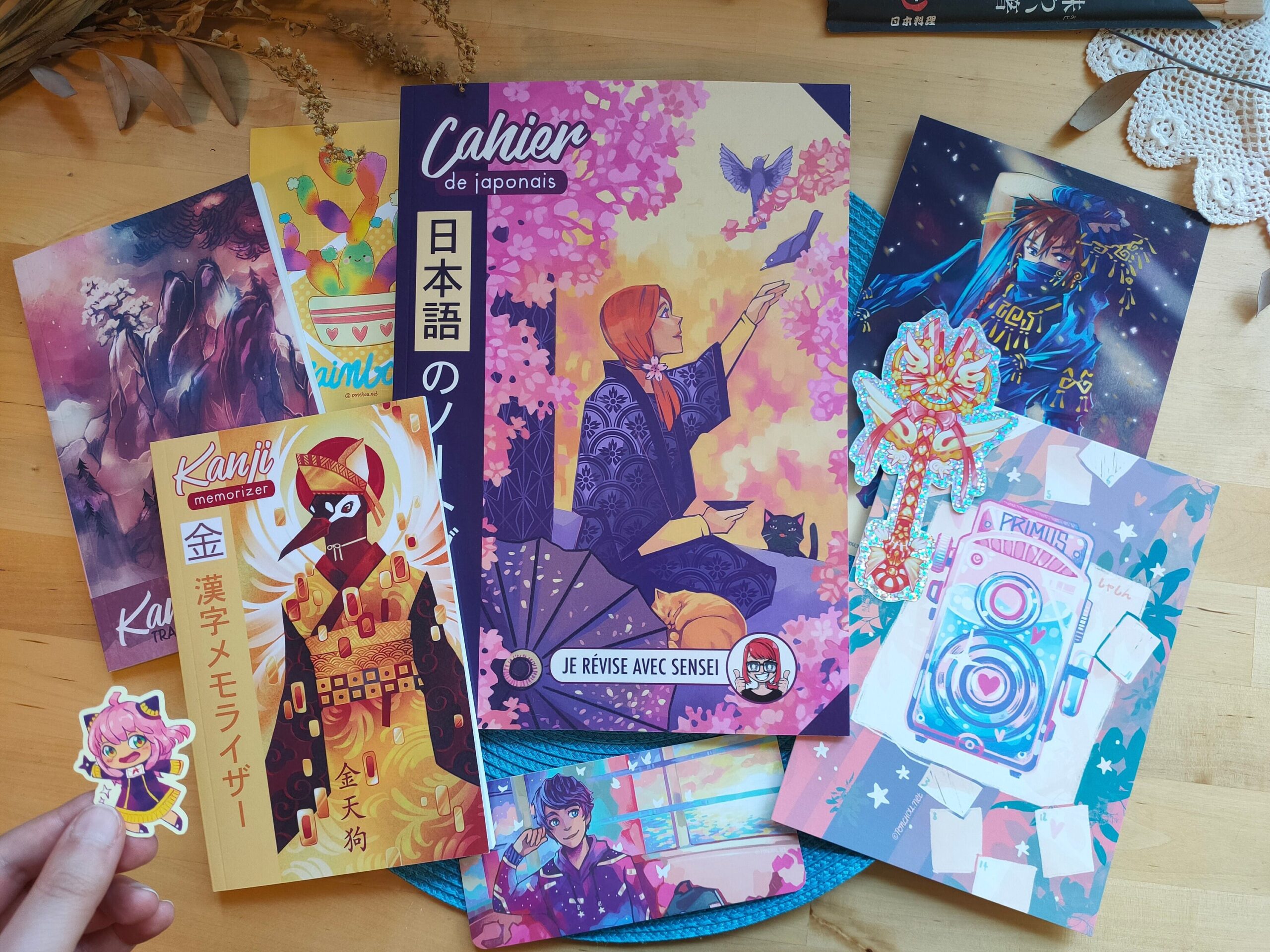 -> un cahier de japonais format A4 (modèle Sakura, je révise avec Sophie-sensei) contenant 6 parties prévues pour les cours de japonais (12€) -> attention les intercalaires diffèrent légèrement des photos démo, celui de Sophie a un design intérieur avec des motifs de fleurs !