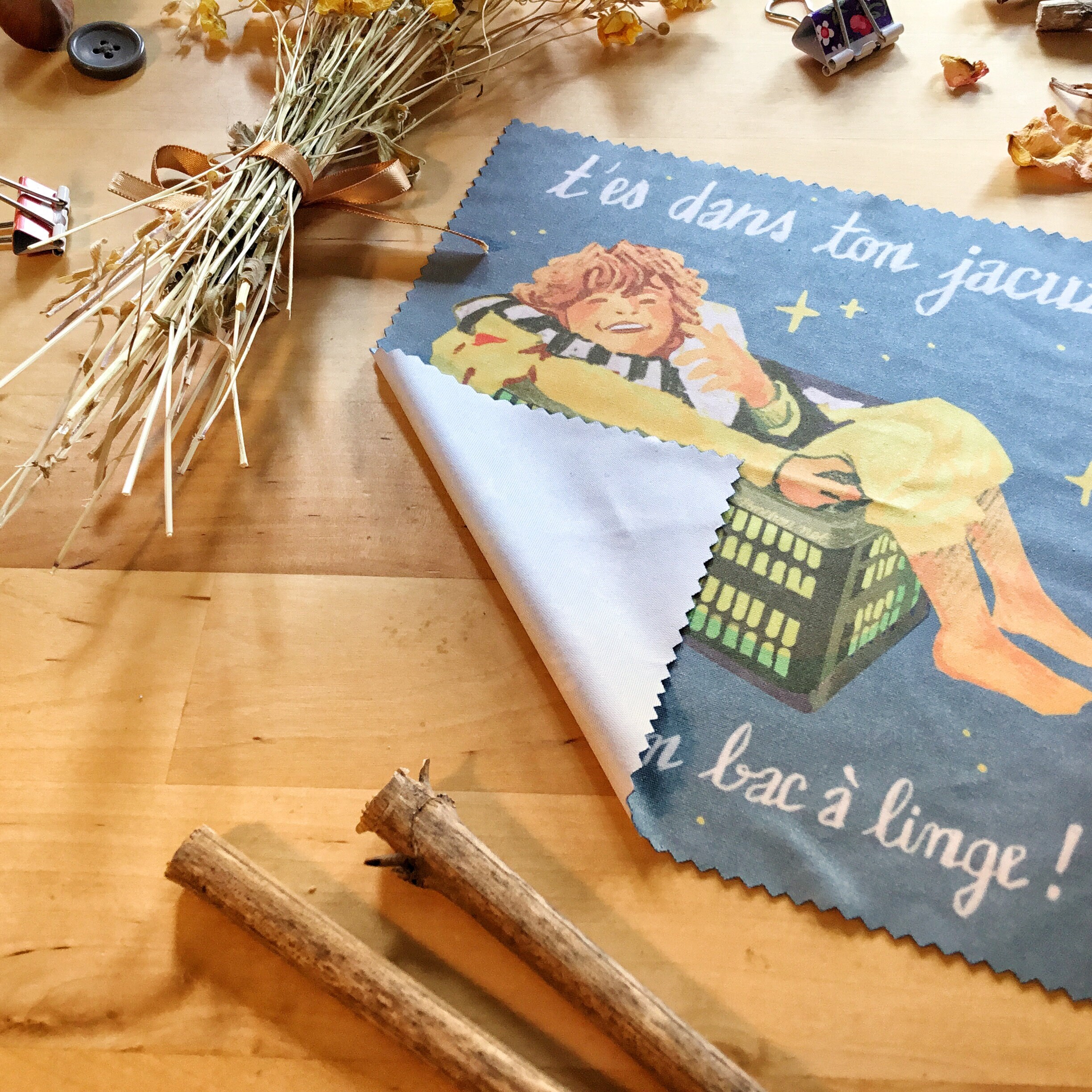 Tissus microfibres « je suis dans mon bac à linge » oklm.